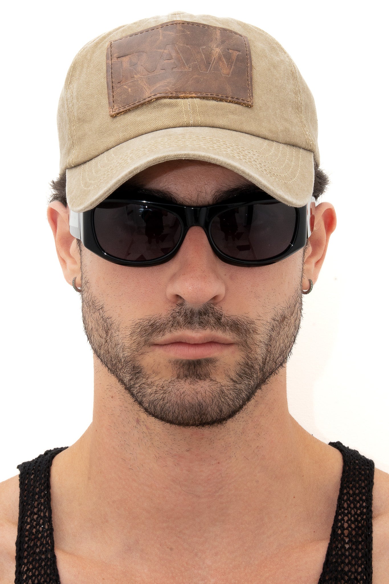 Crafted from 100% washed cotton, the RAW HAT combines rugged texture with minimalist design. Each piece features a hand-cut leather patch embossed with the RAW logo aged naturally to develop unique character over time.