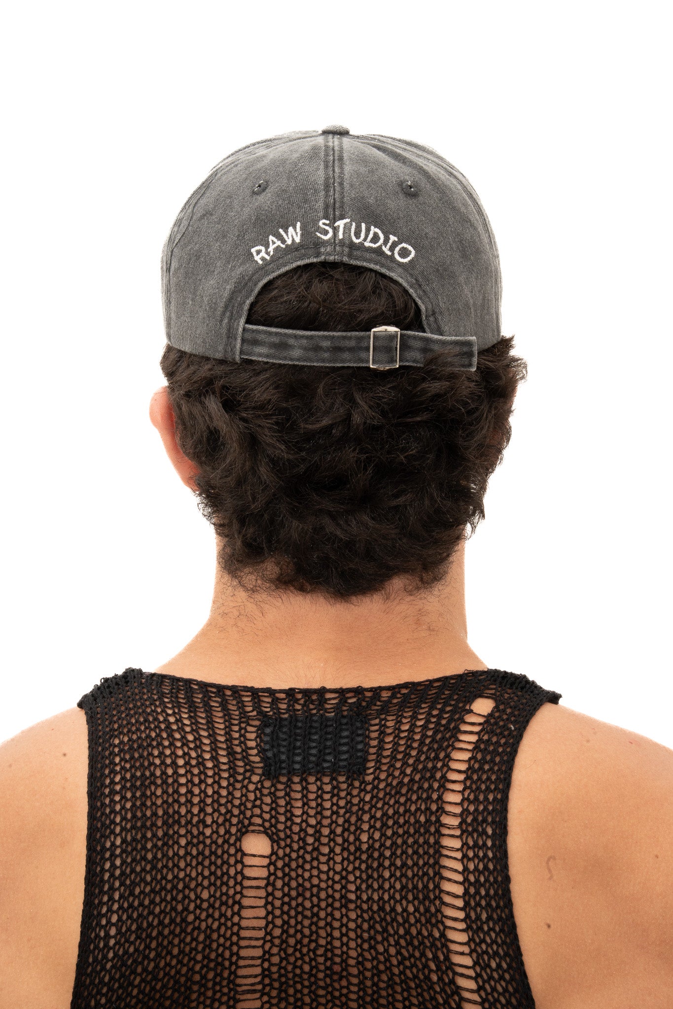 Crafted from 100% washed cotton, the RAW HAT combines rugged texture with minimalist design. Each piece features a hand-cut leather patch embossed with the RAW logo aged naturally to develop unique character over time.