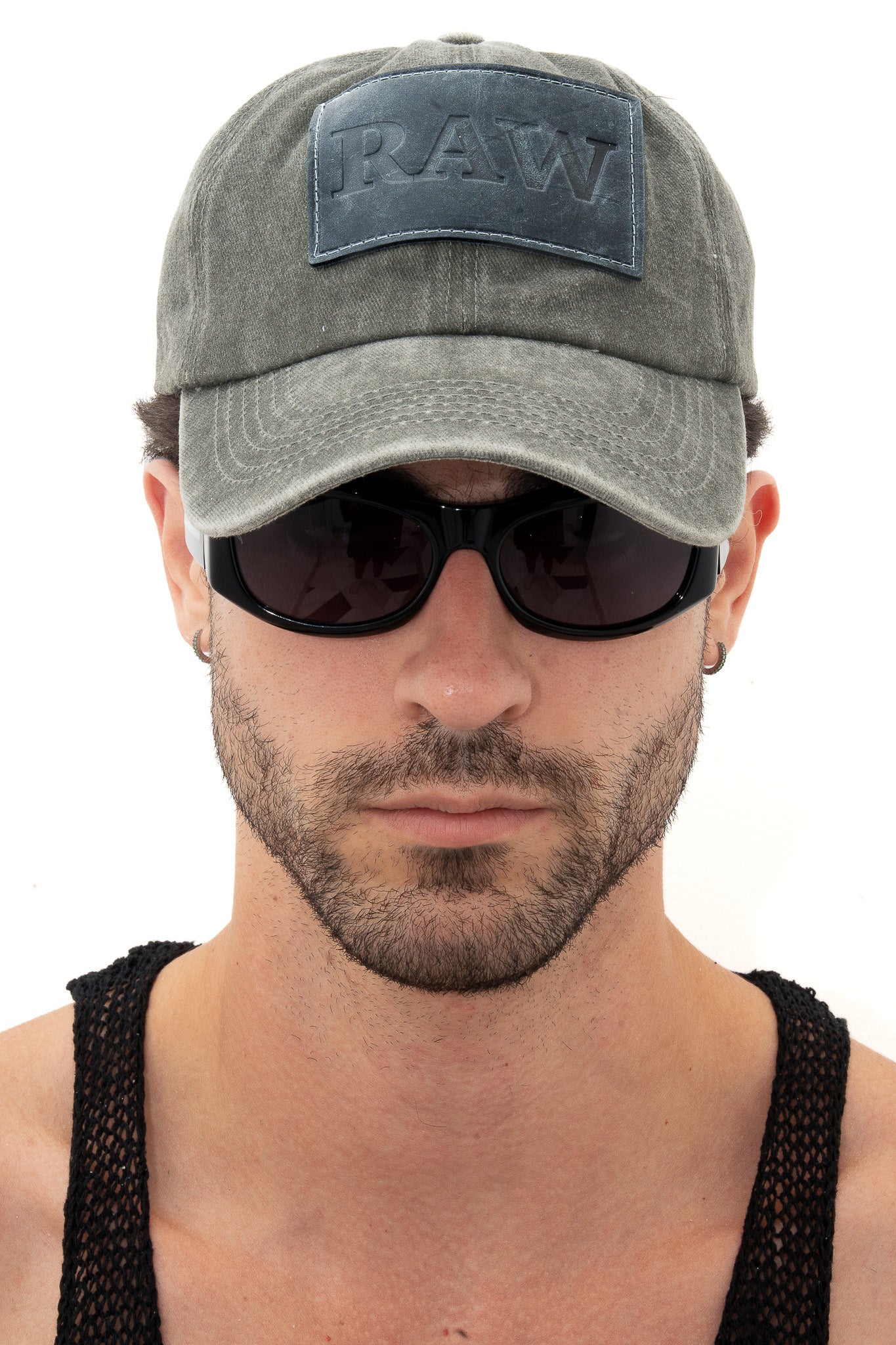 Crafted from 100% washed cotton, the RAW HAT combines rugged texture with minimalist design. Each piece features a hand-cut leather patch embossed with the RAW logo aged naturally to develop unique character over time.